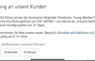 „Rückzugslimit“ ist eine besondere Wortneuschöpfung der Raiffeisenbank in der Schweiz. Das oben abgebildete Schreiben sollte eine Warnung an alle Kunden sein. Wenn eine Bank das... Read more