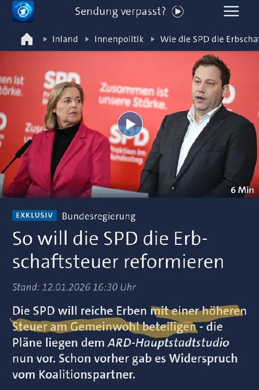 „Mit einer höheren Steuer am Gemeinwohl beteiligen.“ Die Tagesschau übernimmt ihre Nachrichten und Formulierungen inzwischen offenbar unredigiert aus dem Willy-Brandt-Haus. Das nennt man Propaganda. Finanziert mit Ihren Zwangsgebühren. Wie finden Sie das?